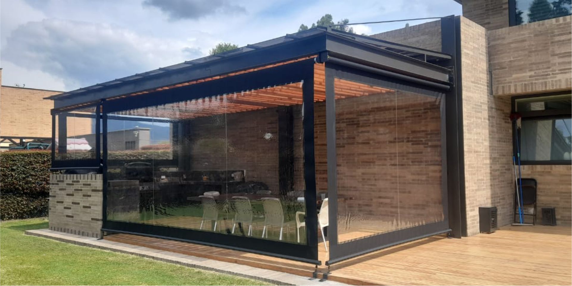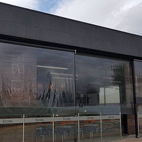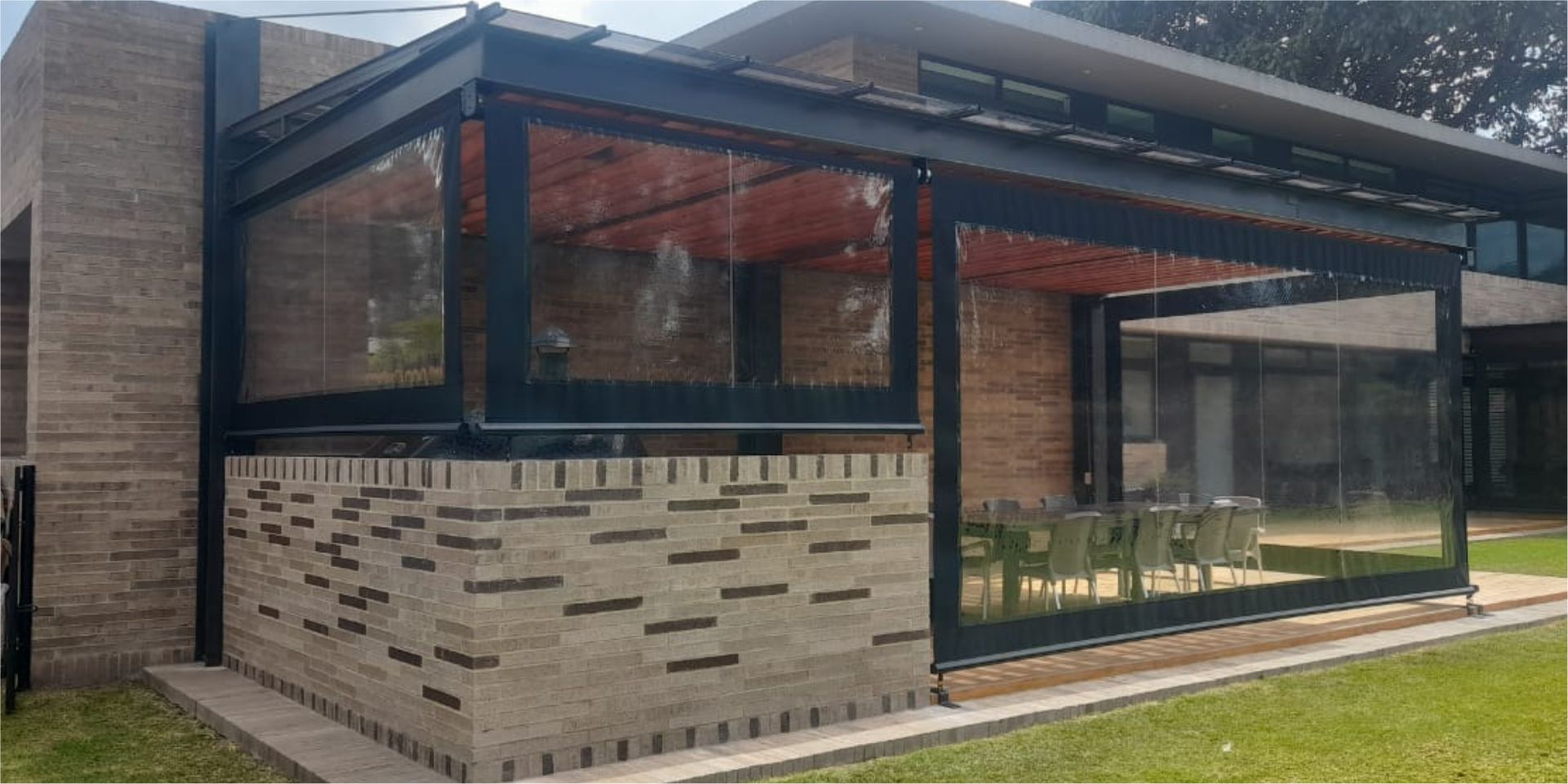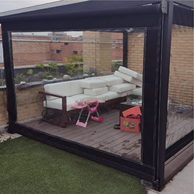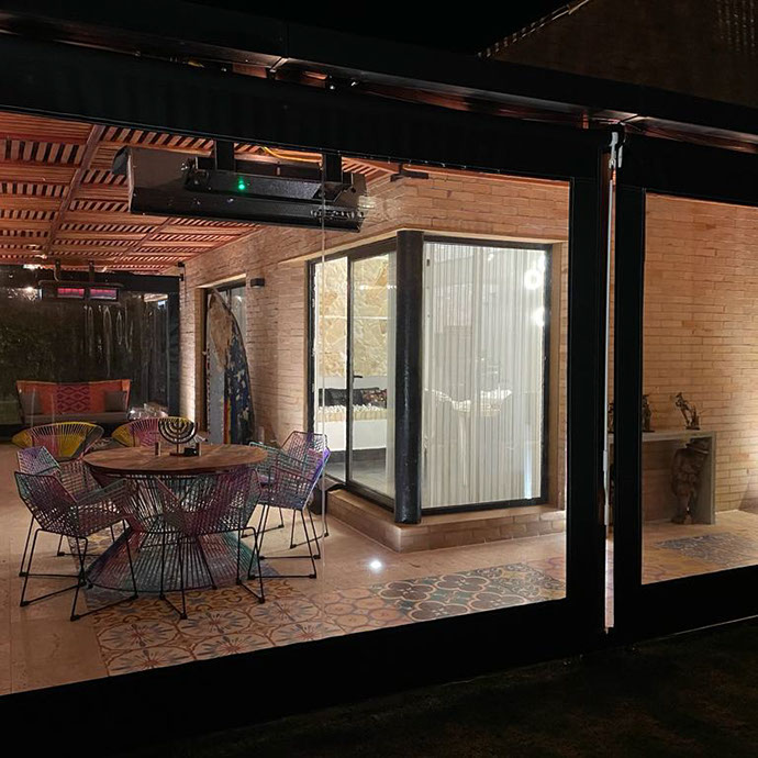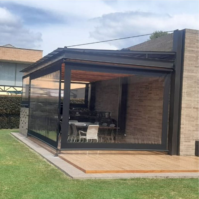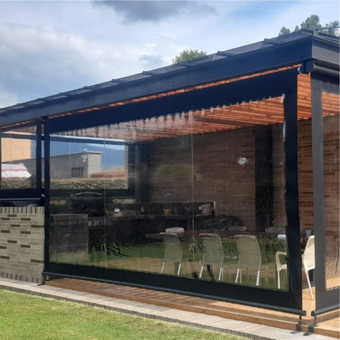 Las ofrecemos con un sistema guiado a través de guayas laterales que permiten enrollar y desenrollar la cortina a conveniencia o con anclajes al piso.