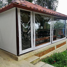 Elaboradas en PVC transparente o en PVC transparente con diseño. El contorno de las cortinas puede ser en PVC (green, black o white).